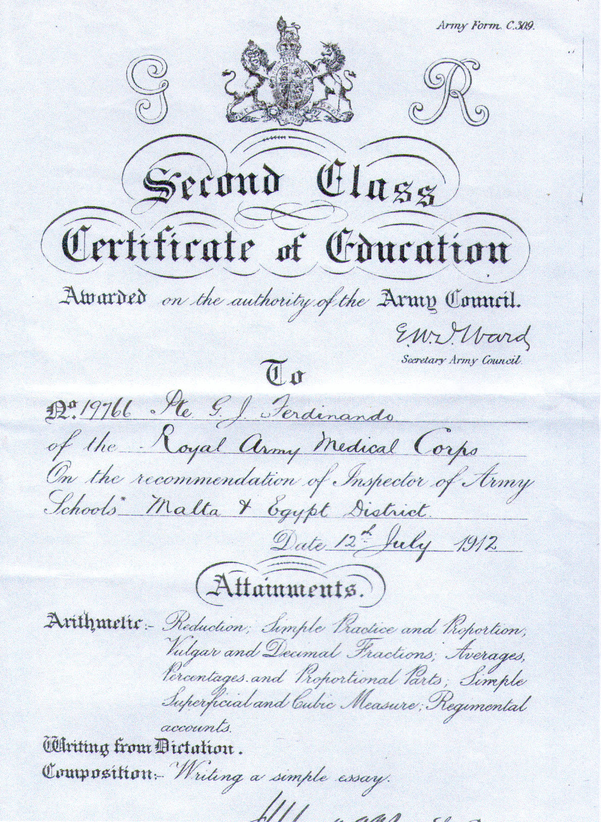 This small section concentrates on George John Ferdinando.