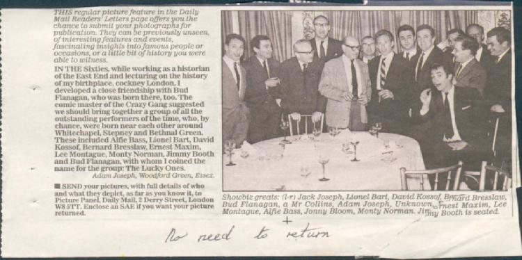 East End Comedians. Interesting article sent in by Joyce Ferdinando