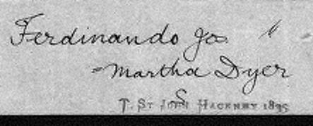 Ferdinando Jos to Dyer Martha 1835 Hackney St John |