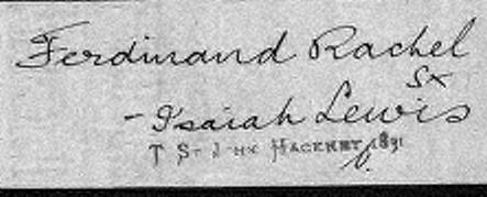 Ferdinand Rachel to Lewis Isaiah 1831 Hackney St John |