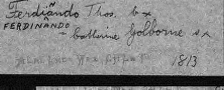 Ferdinando Thos to Golborne Catherine 1813 All Hallows